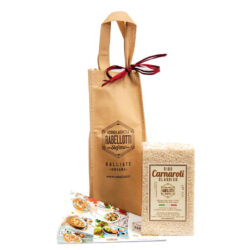 Sacchetto in TNT avana cm 12x11x34 – Contenuto: 1 Riso Carnaroli Classico 1Kg (disponibile anche integrale o semilavorato) Funghi porcini secchi 50g qualità “Speciali”